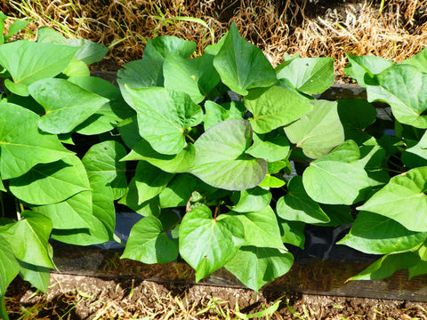 ソーラーシェアリングとは、農業生産と太陽光発電を同じ土地で行う取り組みです。農地に柱を立て、その上に太陽光発電設備を設置して発電をしながら、下の土地では農業を行います。さつまいもは、弱い光でも十分に育つ作物なので、ソーラーシェアリングにも向いています。